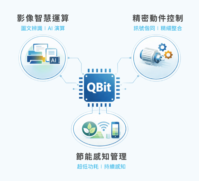 通寶卓越的三種核心技術:精密動件控制、影像智慧運算及節能感知管理。